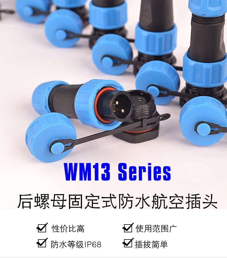 WM13-7芯 后螺母固定式 针插头 孔插座 WM13S07PM-01