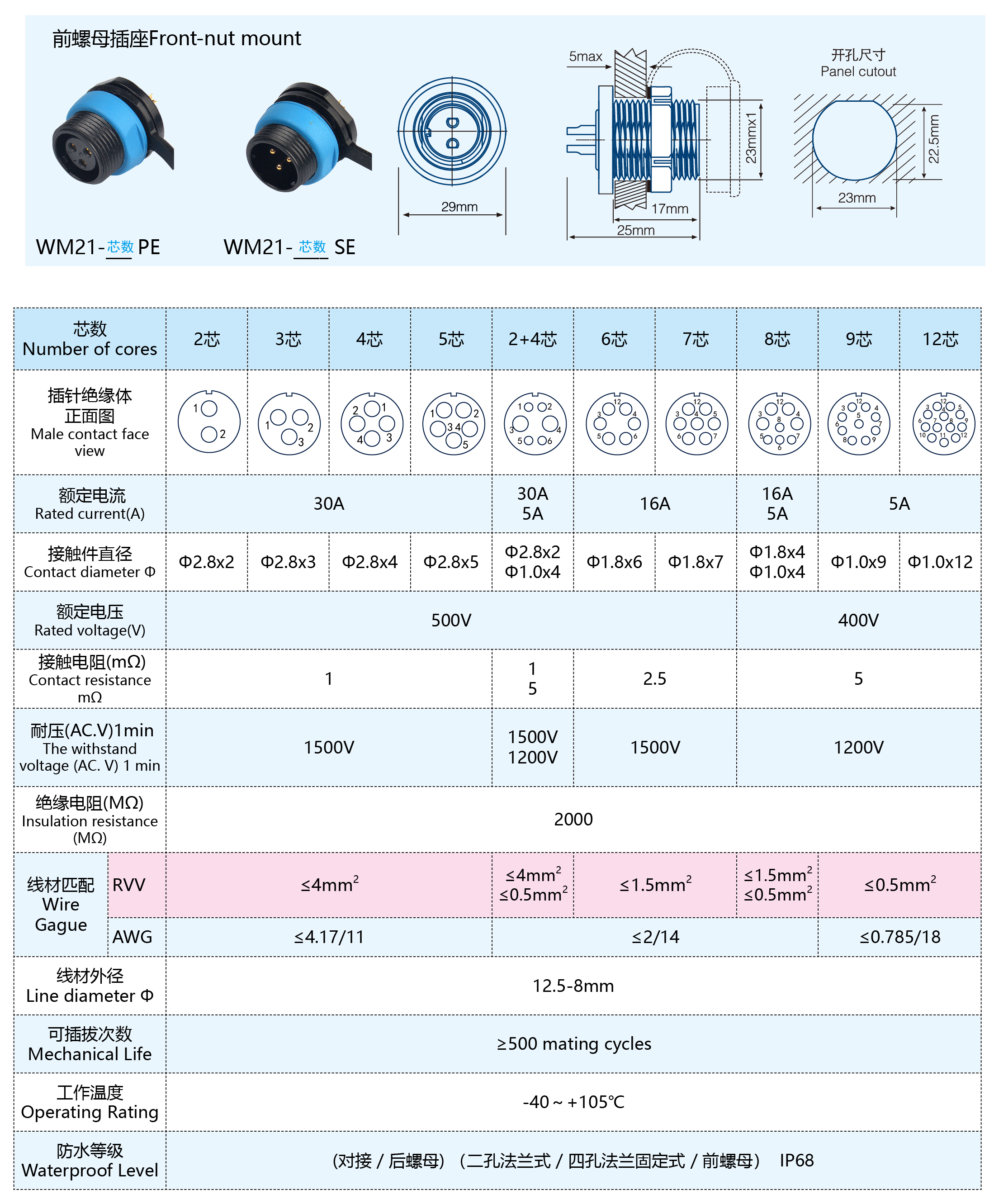 WM21-5芯 对接式 防水连接器 WM21S05PP-01